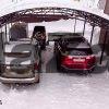 Навес на 2 машины перед домом с кровлей из поликарбоната