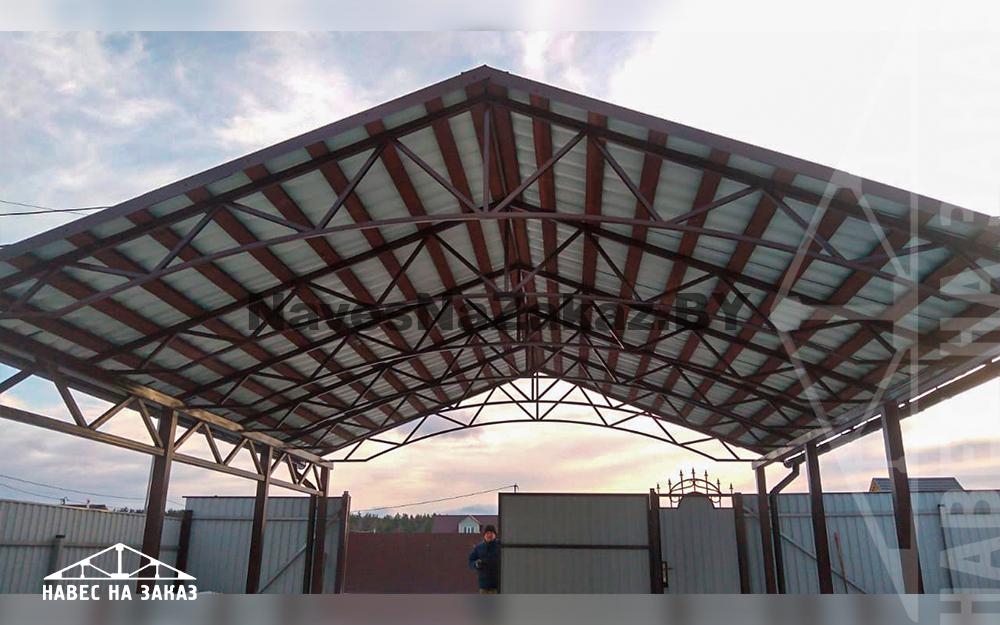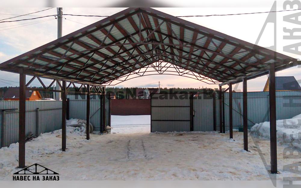 Двускатный навес на 2 машины с кровлей из металлочерепицы