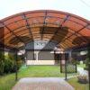 Гараж с большим арочным навесом под одной крышей