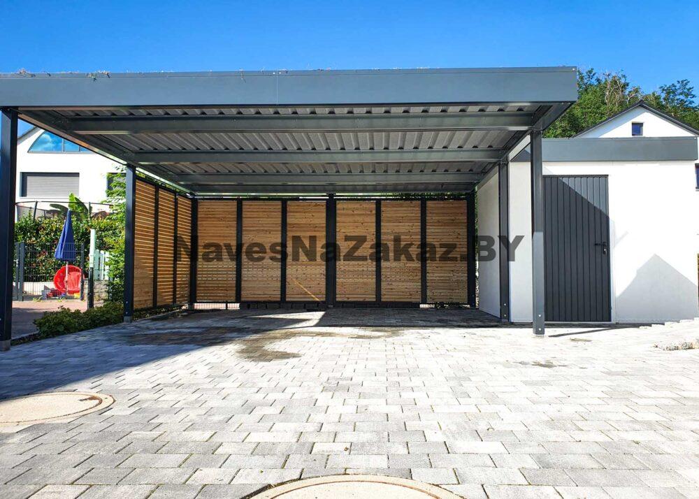 Двускатный навес на 2 машины с кровлей из металлочерепицы